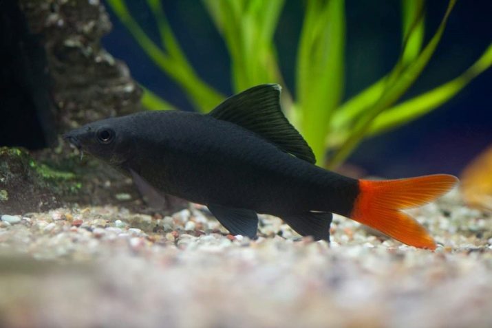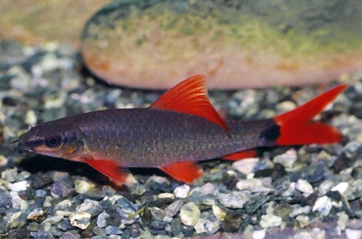 - Labeo bicolor ou bicolor - vive em reservatórios da Tailândia. Foi importado para a Rússia em 1959. Coloração: torso de veludo preto, barbatanas de tom vermelho ou laranja brilhante. Anal, abdominal e barbatanas no peito são transparentes.