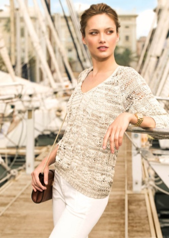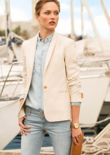 A última tendência é um relógio de ouro, cuja pulseira repete a cor do traje - especialmente se for areia, escarlate, rosa suave, azul claro, cáqui ou vermelho. Para não exagerar na cor, dilua o traje com uma blusa preta ou branca, camiseta ou camiseta e dê preferência a sapatos cor de carne.