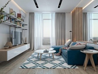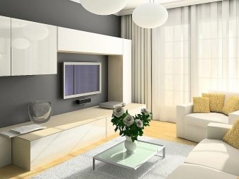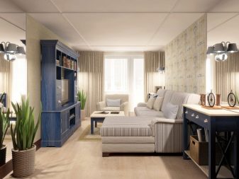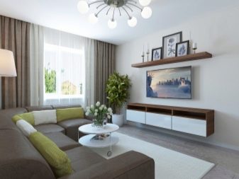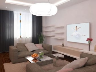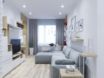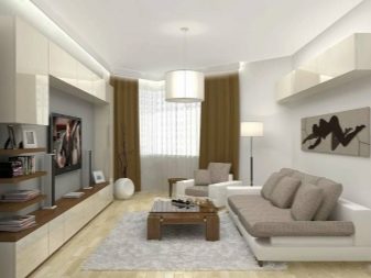 O design de uma sala de estar retangular e quadrada pode ser bem-sucedido. Mais difícil com uma sala muito estreita. É aconselhável que a sala esteja voltada para o lado ensolarado.