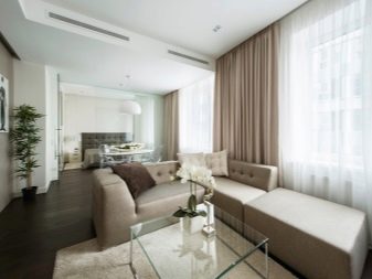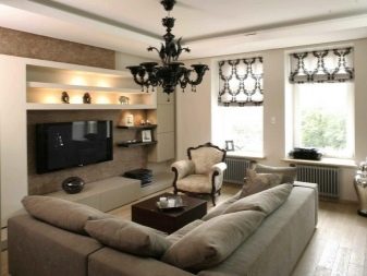 O estilo moderno é um conceito muito geral que é interpretado de maneira diferente. E muitas vezes eles significam clássicos modernos. Se você se referir simplesmente aos clássicos, encontrará contradições. Os clássicos são ricos em decoratividade, um pouco de pompa no design. Em uma pequena sala de estar, isso é extremamente inapropriado. Porque referem-se à interpretação moderna dos clássicos, que é mais complementar aos apartamentos pequenos.