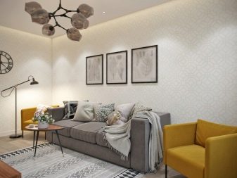 Uma pequena sala não é algo para se envergonhar. Um grande número de exemplos da Internet, as redes sociais confirmam que em uma área modesta você pode criar o interior mais fofo. Não é chato, nem apertado, nem bagunçado, mas fresco, cheio de luz e ar. Apenas primeiro decida um estilo que o ajudará a não se distrair, organize idéias e escolha de elementos interiores.