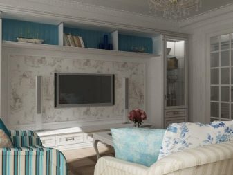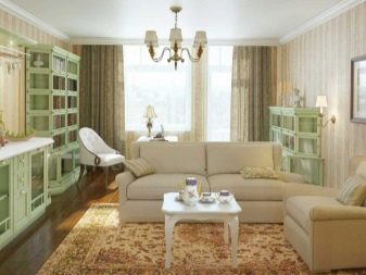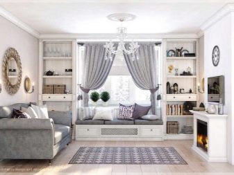 É mais adequado para salas de estar espaçosas, mas mesmo nas condições de 15 quadrados você pode recriá-lo com sucesso. Isso é feito devido a tons claros, luz natural abundante. Você também precisará de móveis de madeira, geralmente pintados de branco. Um estilo reconhecível fará têxteis com motivos florais.
