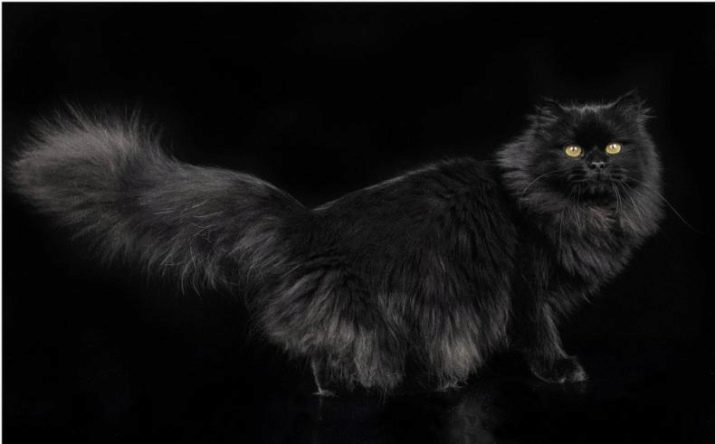 Ela também tem cabelos longos, corpo forte, olhos grandes, orelhas largas, nas extremidades das quais podem haver pequenas borlas. No peito, há uma coleira chique e nas pernas - calcinha feita de lã, devido à qual os gatos parecem simplesmente luxuosos. O pêlo é muito macio e agradável ao toque. A cauda é geralmente longa e fofa. Nos animais pretos, os olhos são geralmente verdes ou amarelos.