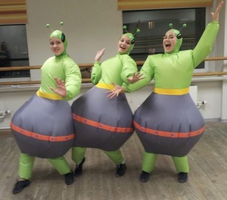 Os trajes animados infláveis são muito leves (o que os diferencia dos bonecos em tamanho real). O equipamento é conveniente para armazenar e trazer discretamente para o feriado em um pequeno pacote.