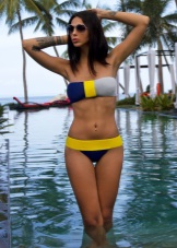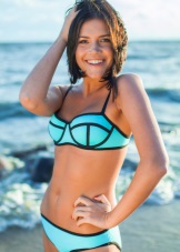 Maiôs esportivos separados são shorts e shorts, um top curto feito de material de secagem rápida. Eles têm um estilo mais descontraído do que os mesclados e serão amados por aquelas meninas que preferem um passatempo tranquilo em uma espreguiçadeira para passatempo ativo, jogos de vôlei de praia ou atividades aquáticas. Neste modelo, você não pode ter medo de que o peito salte acidentalmente do corpete durante os saltos ou correias soltas.