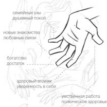 - Mas o dedo mindinho é destinado à paz de espírito. Além disso, este dedo simboliza os laços matrimoniais e a felicidade da família. Ao destacar o dedo mindinho, você pode ficar mais relaxado, graças ao qual será possível resolver muitos problemas familiares sem conflito.
