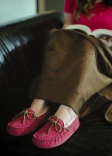 - Outra vantagem deste sapato é sua compatibilidade com roupas de vários estilos. Os mocassins convenientes são adequados para longas caminhadas, para o trabalho e também para a função de chinelos. Se a casa ou o apartamento não estiver muito bem aquecido, esses chinelos de pele são a solução perfeita para se aquecer.
