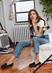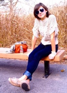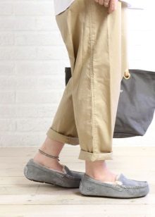 Este sapato fica ótimo com calças e jeans, estreitos ou alargados até o fundo. Embora os estilistas não recomendem mocassins para uma saia, mas com um modelo quente de corte livre ou estilo étnico, isso é bastante aceitável.