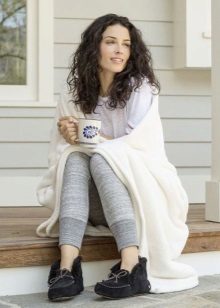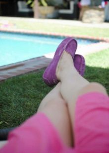Mocassins caseiros ficam bem com um roupão de banho ou terninho, pijama. É conveniente que esses sapatos estejam disponíveis nas versões masculina e feminina - você pode comprar um conjunto completo para todas as residências.