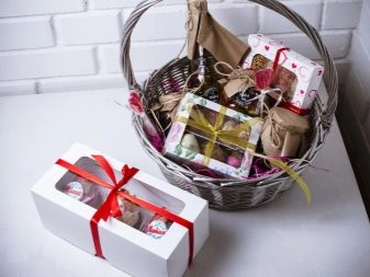 - uma cesta de presentes cheia de doces, chá e outros presentes;
