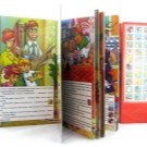 - Livros. Para iniciantes, você pode comprar publicações para os menores - com botões ou panoramas de música. De particular interesse são os livros com adesivos (melhor se forem reutilizáveis).