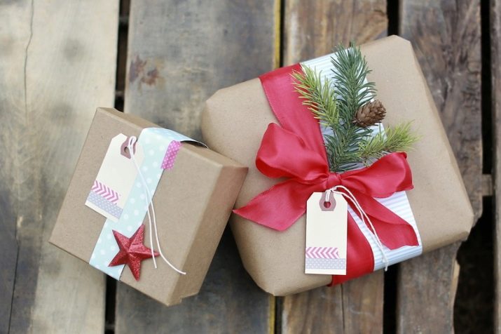 Para tornar o presente mais brilhante, você pode adicionar fitas ou laços à embalagem - eles são fáceis de fazer.