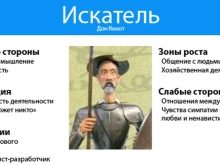 Dom Quixote capaz de ver o potencial oculto em cada pequena coisa. Eles habilmente usam qualquer fraqueza do oponente, e qualquer propriedade valiosa do sujeito, e uma chance favorável, fornecida mesmo por um curto período de tempo. O sociotipo "Yesenin" é caracterizado pela capacidade de sentir, mesmo de muitas maneiras intuitivamente, o momento mais conveniente para este ou aquele passo. "Yesenin" é mais fácil do que outras pessoas prever o desenvolvimento adicional de eventos.
