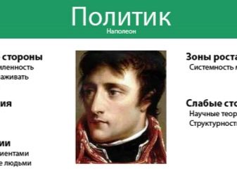 Tipo Dumas - Este é um introvertido que prefere considerar o mundo ao seu redor subjetivamente. Eles precisam de uma atmosfera confortável em qualquer caso. Quanto mais harmonioso o ambiente, melhor. O sociotipo "Napoleão" é totalmente consistente com as características do famoso comandante. Ele se caracteriza por uma forte vontade, perseverança em alcançar seu objetivo e a capacidade de ir em direção a ele, mesmo que a situação seja desfavorável.