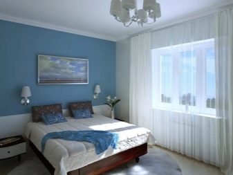 Portanto, muitas pessoas costumam escolher papel de parede azul para decoração de instalações residenciais, incluindo quartos. Eles não irritam os olhos, não se incomodam e são combinados com quase todas as outras cores.