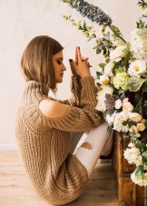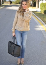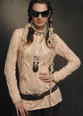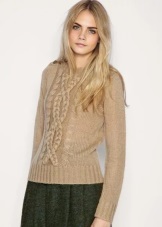 Există modele foarte strălucitoare și originale de pulovere bej, în care doar anumite zone, cum ar fi mânecile sau gâtul, sunt decorate cu modele voluminoase luxuriante. Modelele pot fi foarte mici și rare, dar totuși vor împodobi un pulover bej și vor asigura un aspect armonios al produsului.