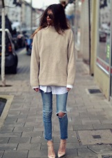 Pulover elegant și bej pentru femei nu limitează în niciun fel fashioniste și fashioniste în alegerea pantofilor. Pentru a crea un aspect modern și armonios în combinație cu un pulover bej, puteți purta: