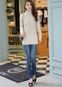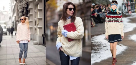 În acest sezon, puloverele tricotate mari, alungite și groase, se pot lăuda cu o popularitate deosebită. Puloverul poate fi cu gâtul înalt, mediu sau foarte deschis, ceea ce permite fashionistelor să selecteze diverse accesorii și pandantive care dau imaginea originalității și tandreții.