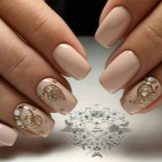 Lacurile de nuanțe de nude sunt foarte populare acum, iar popularitatea lor continuă să crească. Toamna acestui an va fi apogeul popularității manichiurii realizate în această culoare, cele mai populare tonuri din această toamnă: fildeș, măsline, gri, bej, carne. În această perioadă, merită să fiți atenți la cele mai clasice versiuni ale manichiurii nud: geacă clasică franceză, revers, acoperire completă, completată de un design de marmură sau unghie, o geometrie ușoară, discretă și, bineînțeles, modele florale și frunze, care sunt cel mai bine realizate în aur.