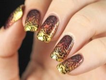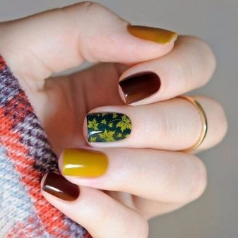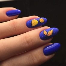 În ciuda faptului că toamna este un timp de aur, și nu un timp pentru sumbre, nu ar trebui să abuzeze exclusiv de vopselele „de toamnă” în manichiură. Desigur, puteți decora unghiile cu modele aurii sau portocalii, dar totul ar trebui să fie cu moderație. În urmă cu un an sau doi ani, tendința de cădere a fost o manichiură portocalie sau un sacou portocaliu, decorat cu aceeași frunză de arțar portocaliu. În ciuda faptului că este distractiv și luminos, această tendință nu a persistat în manichiură.