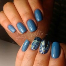Este deosebit de relevantă o manichiură cu desene bazate pe tablouri de Van Gogh și Edward Munch, precum și orice alte „cu sens”.