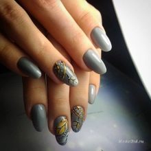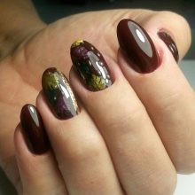 În această toamnă vom permite o astfel de opțiune pentru decorarea unghiilor, dar nu ar trebui să faceți accente prea strălucitoare, ar trebui să optați pentru un design nu prea captivant.