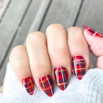 - Celula intră din nou în modă. Toamna, un poncho confecționat din țesătură, similar cu materialul kilt, va izbucni în modă. Designul unei manichiuri cu o astfel de cușcă va fi, de asemenea, în vârful popularității.