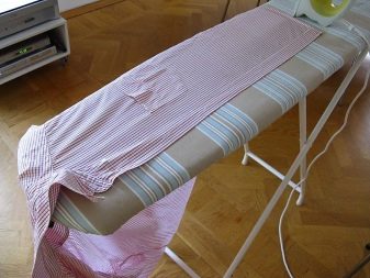 - Mai departe, umerii produsului sunt călcați. Pentru a simplifica acest proces, se recomandă purtarea unei cămăși pe o parte îngustă a plăcii. Datorită acestui fapt, umărul drept și cel stâng pot fi călcate rapid și ușor fără pliuri.