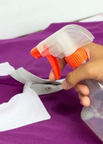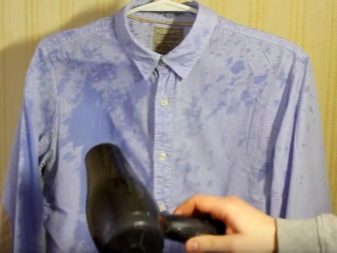 - Dacă produsul este în exces, atunci trebuie stropit cu apă folosind o sticlă pulverizată sau așezați cămașa timp de 30 de minute într-o pungă cu celofan umed. În plus, lucrul poate fi strâns învelit într-un prosop umezit sau tifon. Pentru țesăturile albe este necesar să folosiți un prosop de nuanțe deschise, altfel este posibilă colorarea.