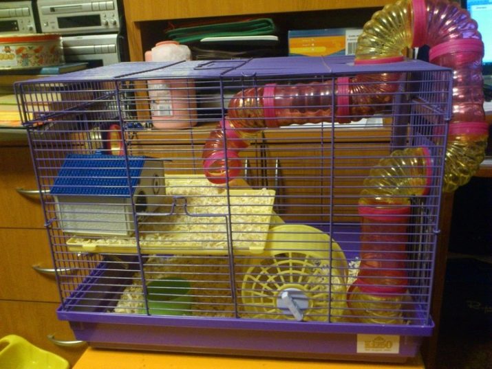 - Dimensiuni. Un adult trebuie să se afle într-o cușcă cu dimensiuni nu mai mici de 50x50 sau 30x50 cm - acest lucru depinde de rasa animalului de companie. O celulă mică va afecta negativ sănătatea hamsterului. De asemenea, nu așezați animalul de companie într-o cușcă concepută pentru un papagal sau cobai. Ar trebui să fie echipat special pentru hamsteri, să aibă dimensiunea și calitatea corespunzătoare.