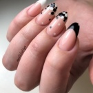 În plus, cu paiete japoneze este foarte simplu să realizăm ideile manichiurii franceze. Kamifubuki sunt așezate deasupra unui zâmbet alb, repetând forma unui arc subțire și atrag și mai mult atenția asupra liniei de contrast.