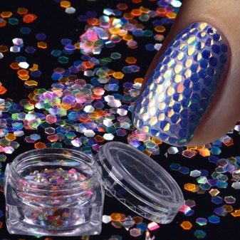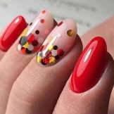 Aduceți o dispoziție festivă și diluați orice aspect cu fragmente colorate pe unghii. Sunt potrivite pentru absolut orice perioadă a anului, se încadrează armonios în stilul casual, sport-chic, boho romantic sau rustic și vor deveni, de asemenea, un plus la modă unei imagini solemne sau de carnaval. Atunci când alegeți nuanțe vibrante precum Red Pear, Valiant Poppy, încercați să echilibrați designul cu kamifubuki auriu, portocaliu sau negru. Pentru o nuanță delicată de albastru închis de Nebulas Albastru, roz, liliac, albastru și paiete din nuanța Tiffany sunt potrivite.