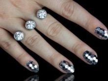 - Decorați-vă unghiile cu romburi de paiete, puteți rezista designului într-o geometrie strictă. Neținând abilitatea de a desena și un ochi clar, vă puteți baza pe un astfel de decor. Plasați elementele în secvența corectă și veți obține o imagine interesantă și atractivă.