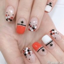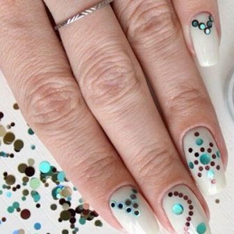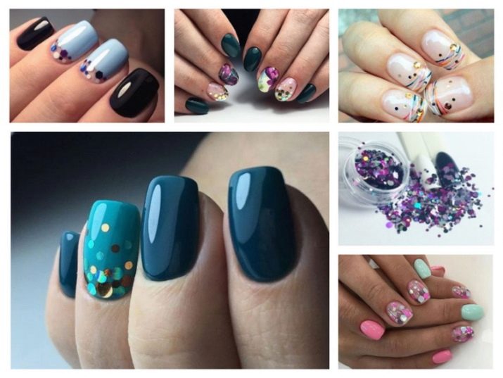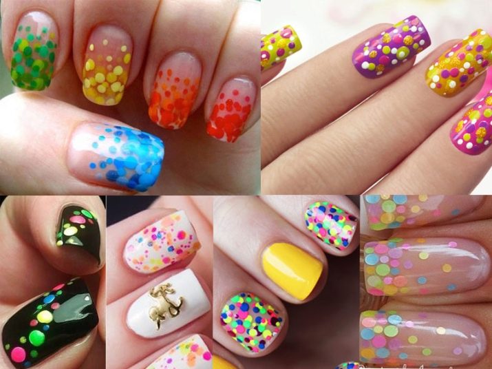 Decorul pentru unghii prezintă cercuri colorate, flori, hexagoane, stele, inimi, romburi. Siluetele și figurile pot fi cele mai neașteptate, dar picăturile și cercurile rămân în continuare „în funcțiune”. Accesoriile pentru design se găsesc în cele mai neașteptate variante: