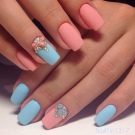 Dacă doriți să utilizați mai multe nuanțe în crearea manichiurii, este important să studiați combinațiile lor. De exemplu, albastru mat arată bine împreună cu negru, alb și chiar roșu. Ideal cu nuanțe de bej, roz, lavandă, gri, nisip.