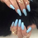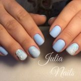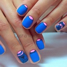 - Dacă plecați în vacanță în viitorul apropiat, atunci manichiura albastră va fi mai potrivită ca niciodată. Diversifică-l cu un desen sau un model într-un stil marin și aspectul perfect este gata. Dacă lucrați într-o companie unde trebuie să urmați un cod vestimentar strict, atunci ar trebui să dați preferință unui finisaj mat simplu sau îl puteți combina cu luciu.