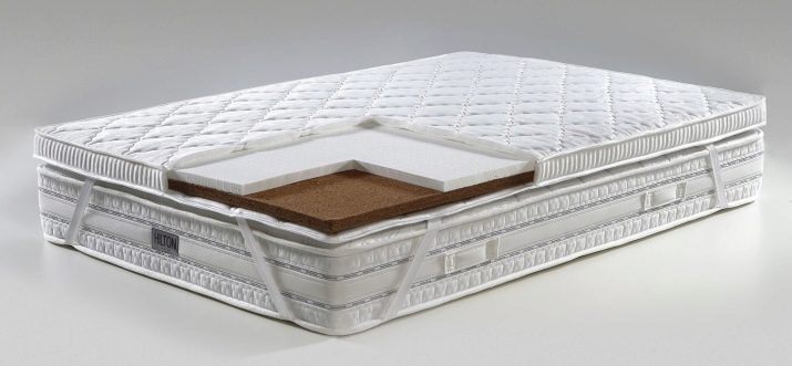 Dacă orna este prea moale, puteți alege o acoperire pentru saltele cu efect opus pentru echilibru. Umplutura de nucă de nucă de cocos este destul de dură, are un efect antibacterian, lasă aerul să se usuce rapid. Medicii o recomandă persoanelor cu probleme ale coloanei vertebrale.