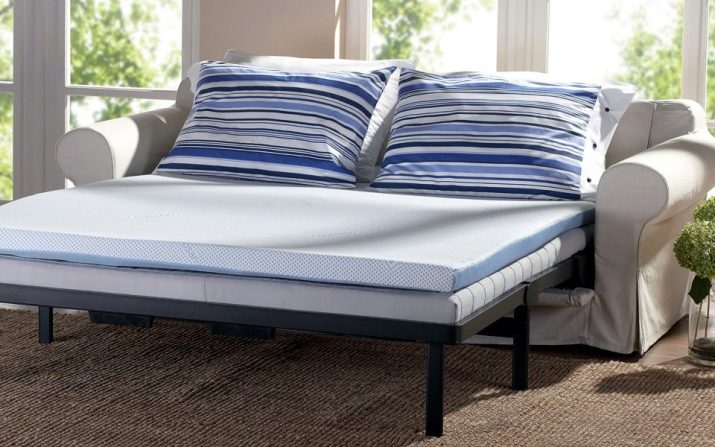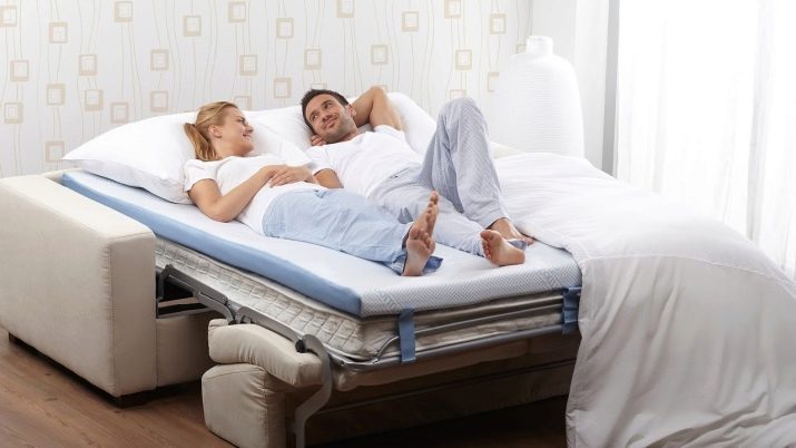 - Îmbunătățiți calitatea somnului, eliminați diferențele dintre blocurile canapelei. Saltelele ortopedice cu o înălțime de 3 până la 10 cm sunt potrivite pentru aceasta. Umplerea poate fi diferită.