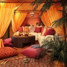 Atmosfera este formată astfel încât să fie capabil să se relaxeze. Folosesc fie o singură culoare, fie culori strălucitoare, în niciun caz nu se amestecă. Uneori, pentru a crea un optim arab interior, fără excese în orice direcție nu iese pe cont propriu, trebuie să numim designeri.