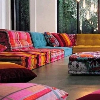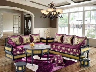 O privire la o canapea arabă este suficientă pentru a înțelege diferențele vizuale. Nu există picioare deloc aici, dar este oferit un joc superb de culori și nuanțe.