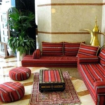 Este ușor de observat, nu mai este chiar și pe baza celor de mai sus că noțiunea de „stil oriental canapea“ uniformă. În mod tradițional, mobilierul arab și turc de acest fel este scăzut, deoarece aceste popoare nu sunt obișnuite cu scaune înalte. Aceasta le dă neplăceri evidente și jena. Dar canapeaua va fi largă și echipată cu un spate înalt. Opțiunile din colțuri din lumea arabă nu sunt, de asemenea, citate prea mari - apreciază mobilierul tapițat direct.