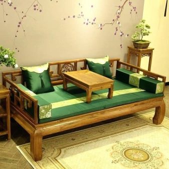 De asemenea, versiunea japoneză a canapelei de est nu va putea ieși în evidență la o anumită înălțime. Este accentuat minimalist și laconic, ceea ce corespunde spiritului întregii încăperi. Spătarul, dacă este cazul, este mic. Piesele din lemn nu se decorează în niciun fel. Utilizarea de materiale foarte scumpe nu este deloc necesară, dar nu ar trebui să existe absolut piese sintetice. Canapeaua chinezească este aceeași cu cea japoneză sau puțin mai mare. Mai mult, este mult mai convenabil pentru europenii și rușii obișnuiți. Dormitul pe ea va fi mai confortabil. Dar cea mai conservatoare abordare, care reproduce pe deplin tradiția chineză, este utilizarea unei canapele din răchită. Pentru fabricarea sa, numai bambusul este potrivit.