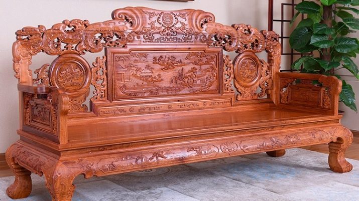 Luați în considerare cum ar putea arăta o canapea tradițională în stil chinezesc. Sunt caracteristice următoarele caracteristici: