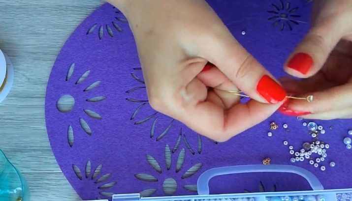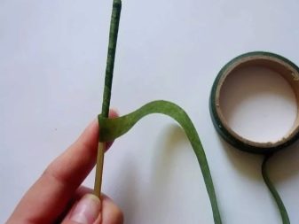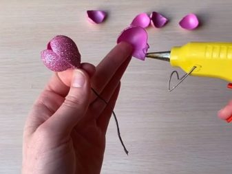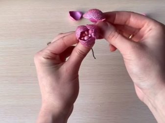 - Frunzele rămase sunt lipite de sepale, străpunse cu un fir în centru. Apropiați-vă petalele de flori și lipiți cu atenție.