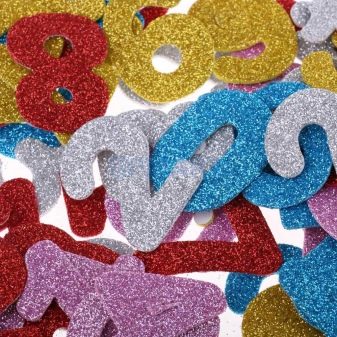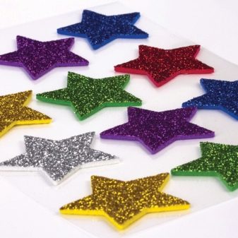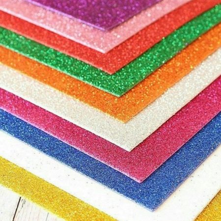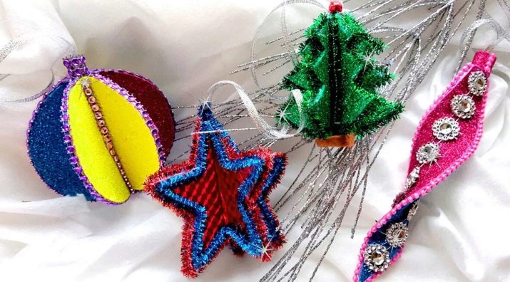Meșteșugurile minunate din foamiranul strălucitor sunt folosite pentru decorarea bradului de Crăciun. Pomul de Crăciun arată original cu jucării strălucitoare. Stropirea cu paiete este pe o parte. La fabricarea acestui material, stratul inferior este încălzit.