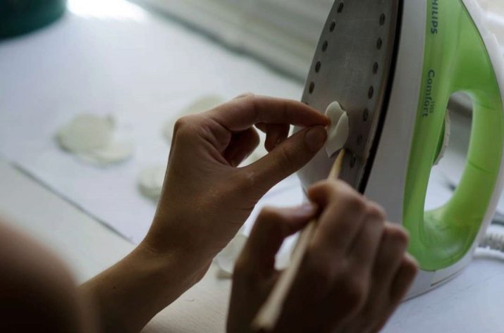 - timp de aproximativ cinci secunde, partea superioară a petalei este încălzită la talpa fierului și răsuciți marginea 1 cm spre exterior;
