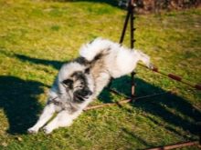 - Grad extrem de activitate. De la naștere, lupii sunt foarte activi și veseli, ceea ce poate aduce o mulțime de griji proprietarilor lor. Este dificil să le urmărești, poate fi dificil să meargă din cauza interesului incontestabil al câinelui pentru tot ceea ce se întâmplă în jur. În copilărie, Keeskhondas este un fel de uragan care nu poate fi stabilit. Acești câini au nevoie de o creștere constantă a energiei prin antrenament, exerciții fizice și jogging. În timp și odată cu creșterea, lupii devin din ce în ce mai puțin mobili, ceea ce simplifică îngrijirea lor, dar poate afecta corpul câinelui.