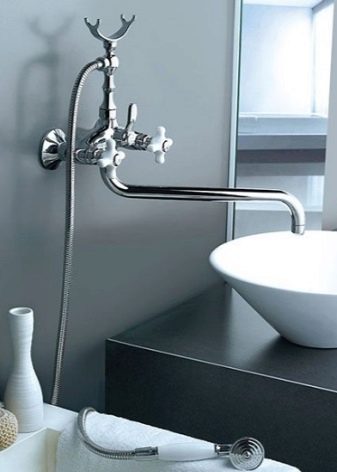 - Dacă nu este posibil să furnizați apă la chiuvetă și baie, nu se poate renunța la un amestecător cu o scurgere alungită.