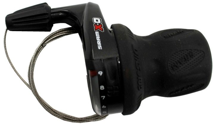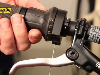 Această opțiune a comutatorului de viteză pe o bicicletă este folosită destul de des. Se fixează la sfârșitul instalării prinderilor. Extern, comutatoarele au aspectul unui mâner cu viteze marcate pe el. Când defilați schimbătorul, viteza comută.Un biciclist care vrea să schimbe viteza trebuie să deruleze mecanismul până când apare un clic. Un sunet caracteristic este o consecință a tragerii sau slăbirii cablului.