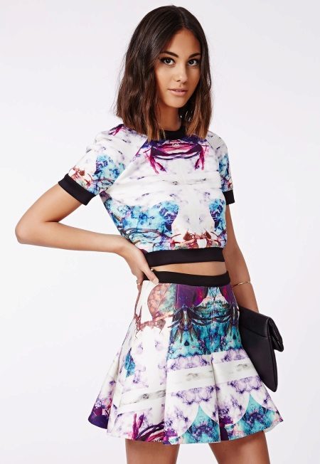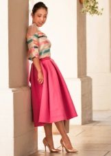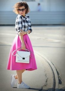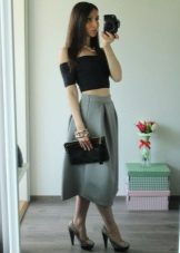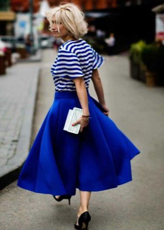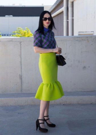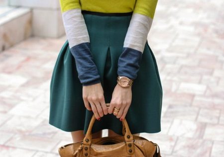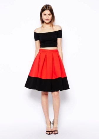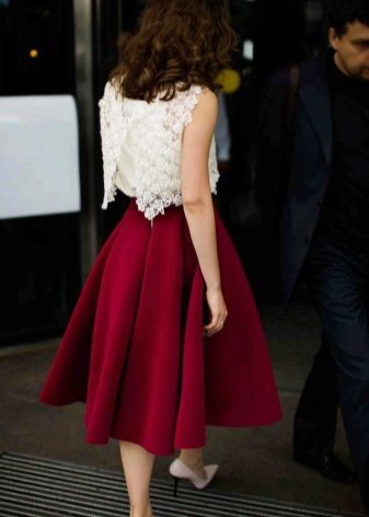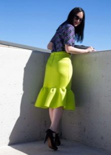 Multe fashioniste au în garderoba lor o fustă de neopren cu midi lungime. Cel mai popular stil este fusta de soare.Poate fi purtat atât pentru o plimbare, cât și folosit pentru a crea un aspect frumos de seară.
